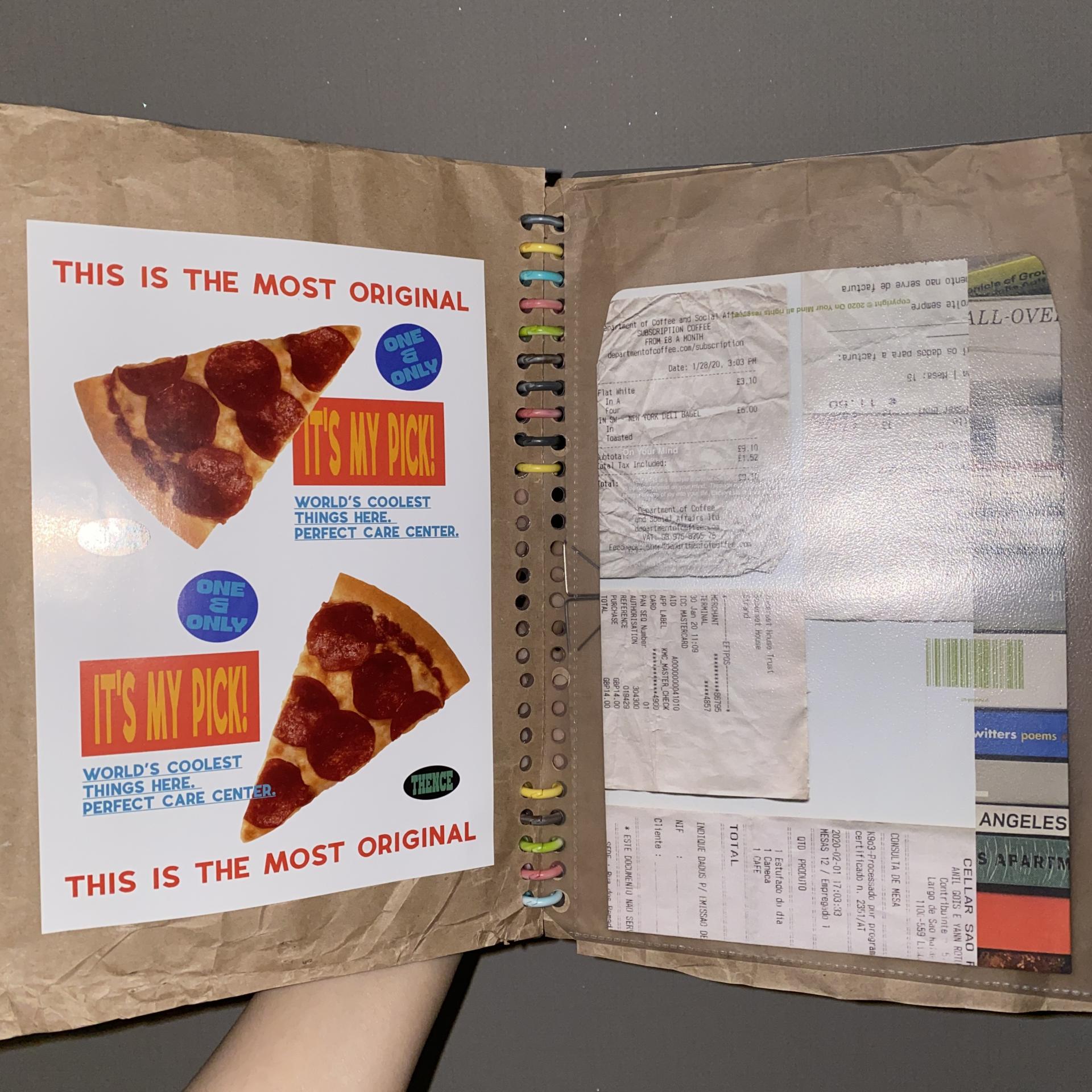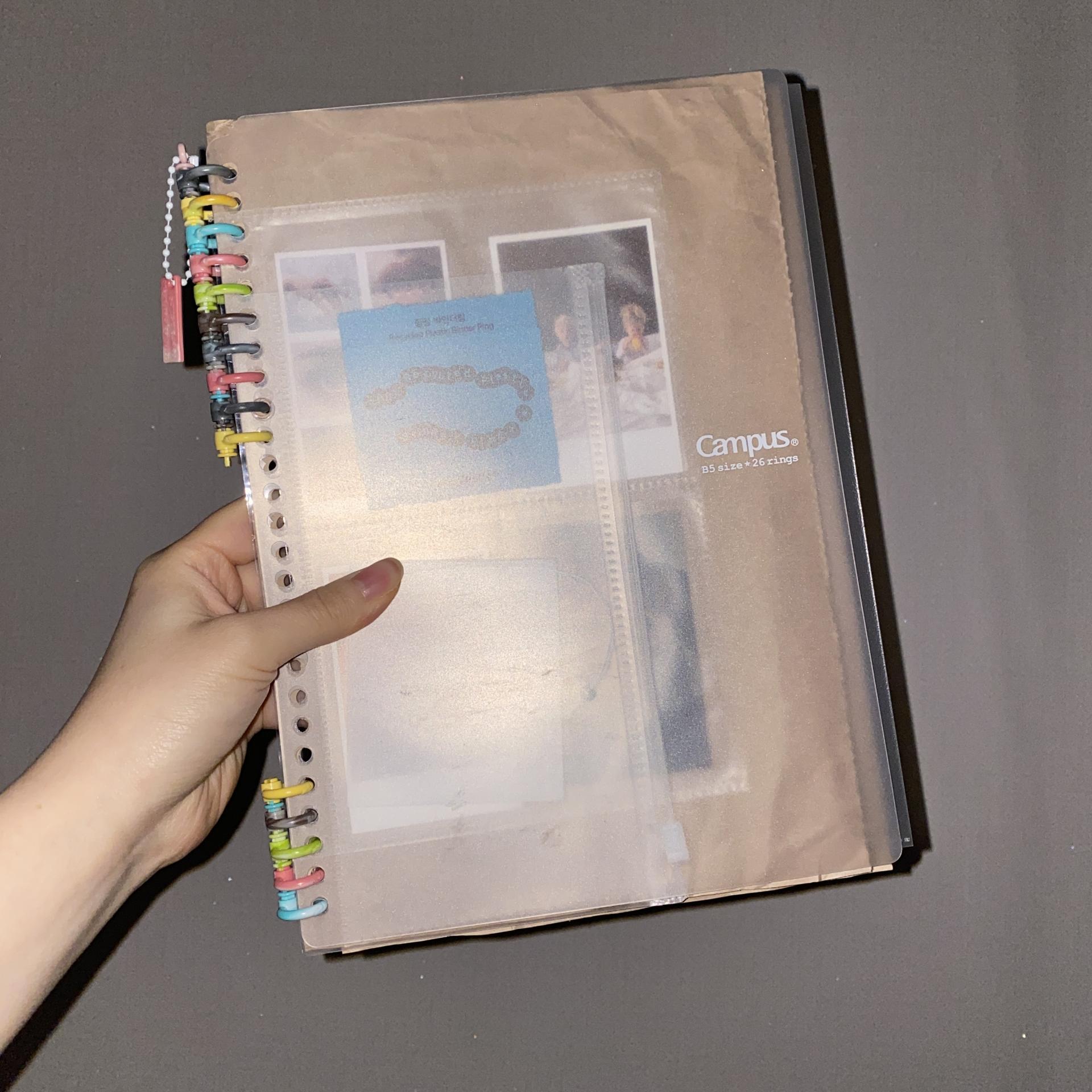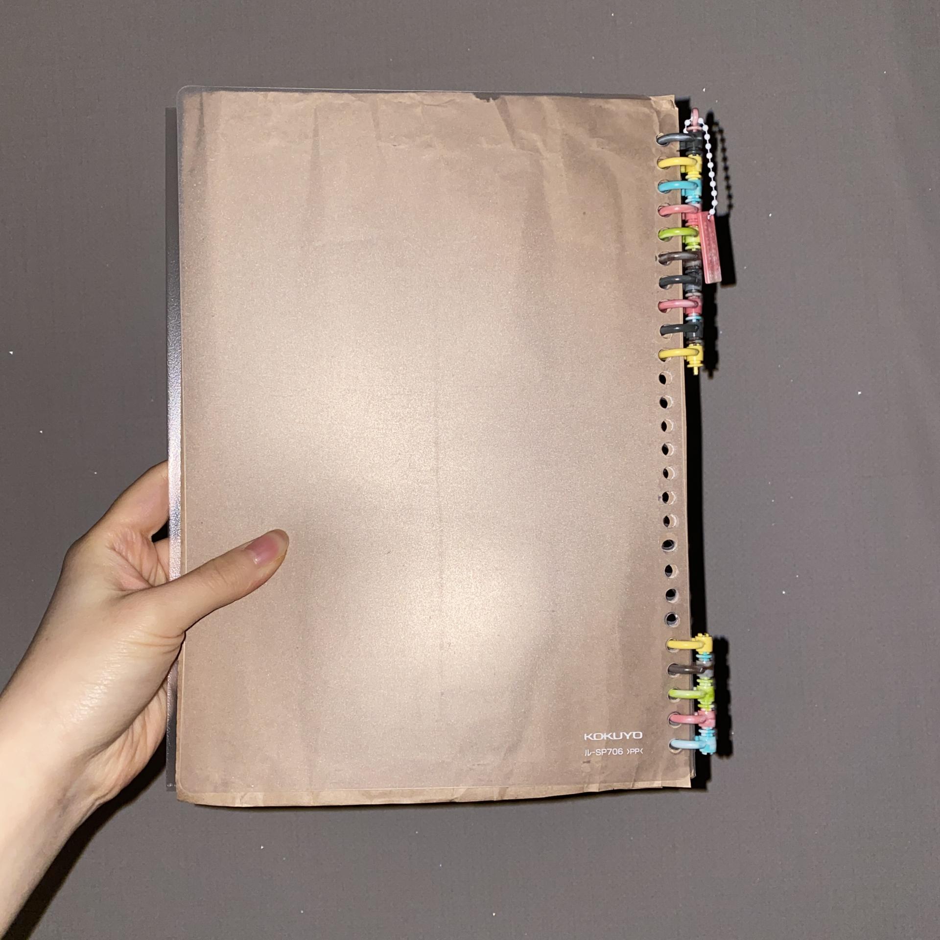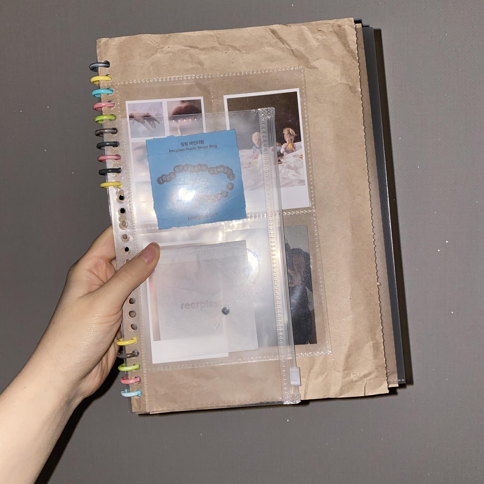 폐플라스틱을 사용해 링바인더를 만든 리어플라스틱에 영감을 받아 현관에 쌓인 택배 부속물들을 이용해 내지를 만들었다.