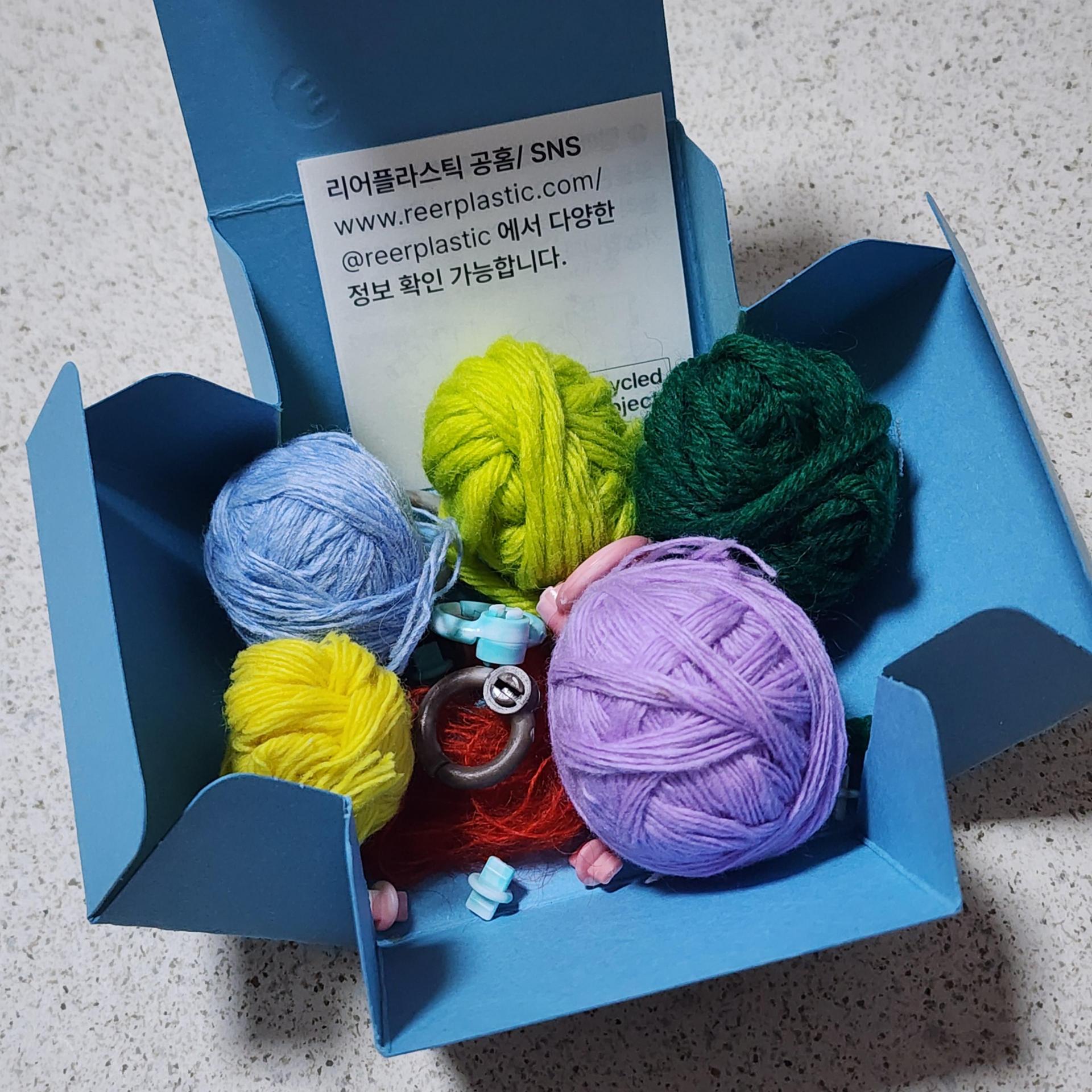 폐플라스틱을 업사이클링해 만든 링링 바인더에 착안해, 집에 남아있던 자투리 실들을 활용해 뜨개 도구 모음집을 만들어보았습니다.