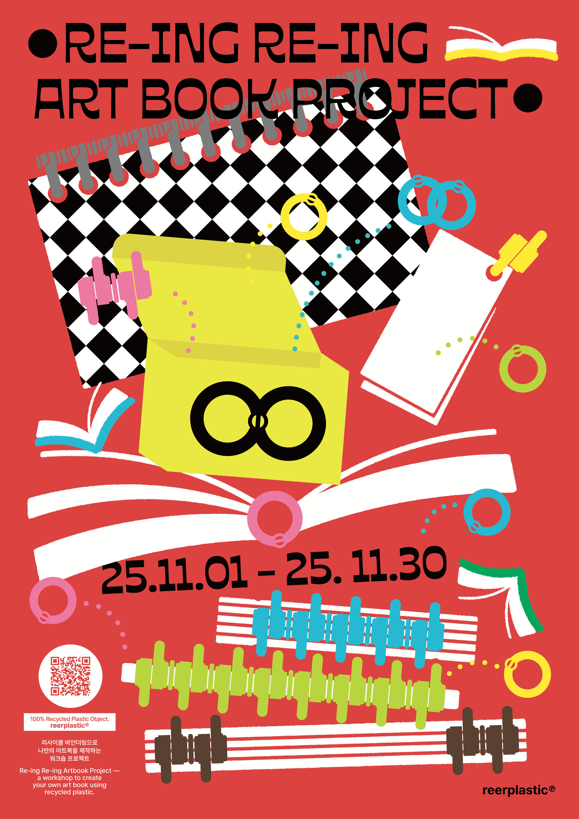 *re-ing re-ing art book project* 는 재활용 플라스틱의 가능성을 예술과 연결해보는 작은 실험이자, 각자의 손에서 다시 태어나는 재순환의 과정을 함께 관찰하는 프로젝트입니다.
